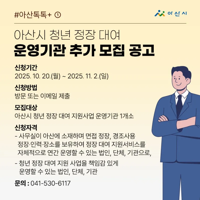 아산시 청년 정장 대여 운영기관 추가 모집 공고