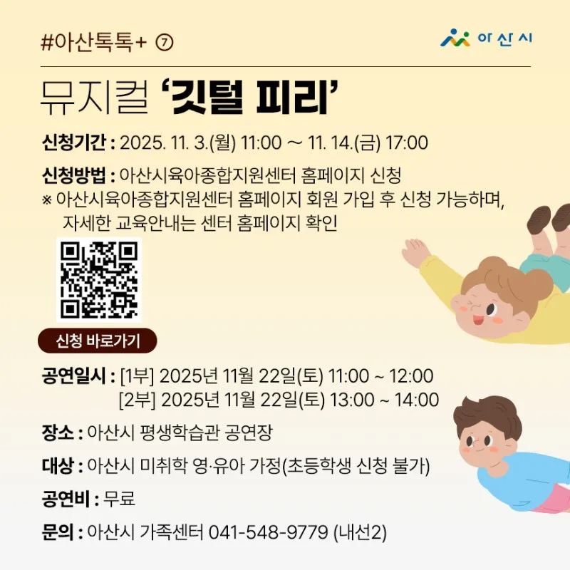문의 : 아산시육아종합지원센터 담당자 041-533-0756(내선 2번)