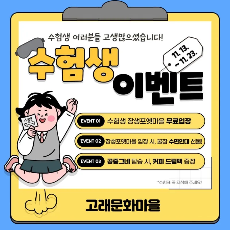 수험표를 지참하시고 마음껏 즐기시기 바랍니다!