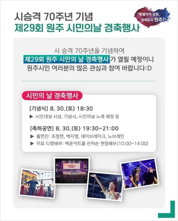 시승격 70주년 기념!! 원주 시민의 날 경축행사가 열립니다.