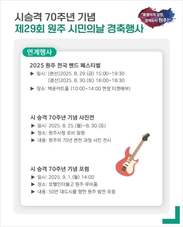 2025년은 원주 시승격 70주년의 해입니다! 🥳