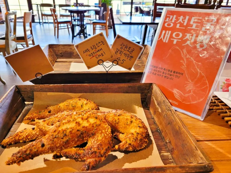 홍성 광천의 유명한 새우젓. 새우 모양을 본 뜻 맛있는 새우 빵🍤도 시그니처입니다.