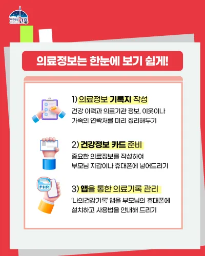 평소에 부모님의 건강 이력과 의료기관 정보, 그리고 이웃이나 가족의 연락처를 미리 정리해 두는 것이 중요합니다.