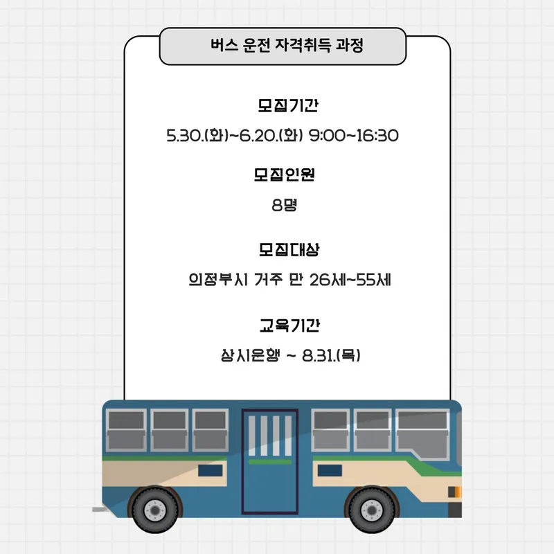 의정부일자리센터 「버스 운전 자격취득 과정」 참여자 모집