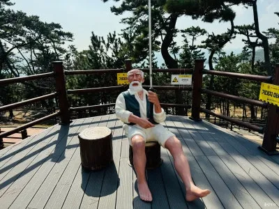 옆에 빈 의자에 앉아 노인과 함께 사진을 찍어보세요. 나 울산 여행 왔다! 하고 인증샷을 남기는 거죠.