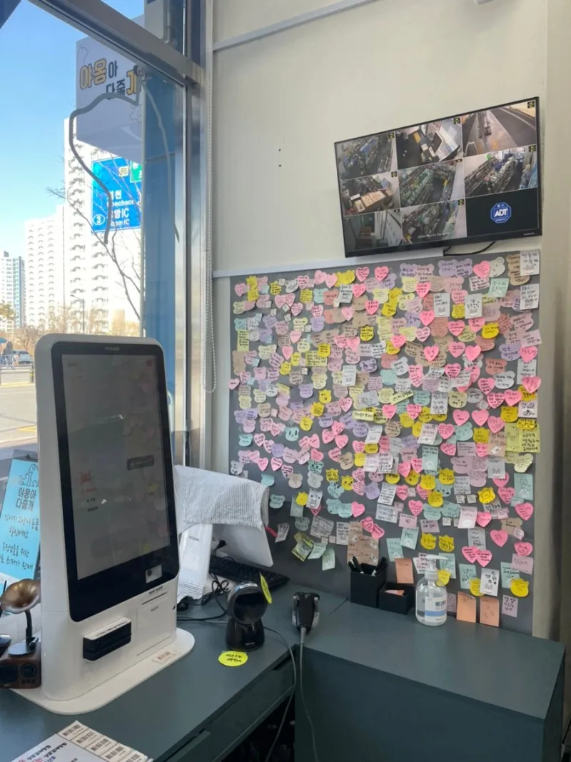 상품을 고른 후 마찬가지로 키오스크로 셀프 결제!