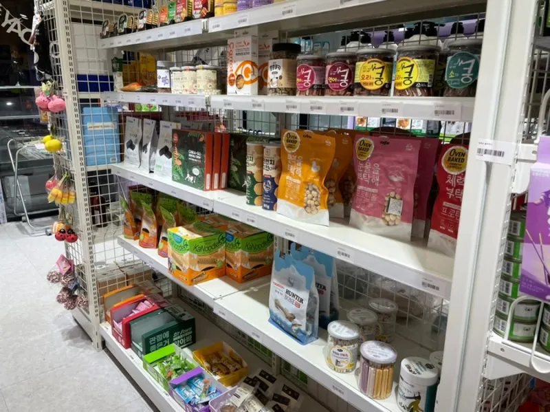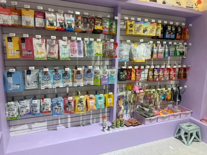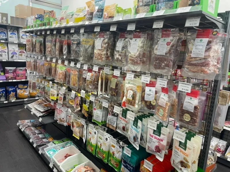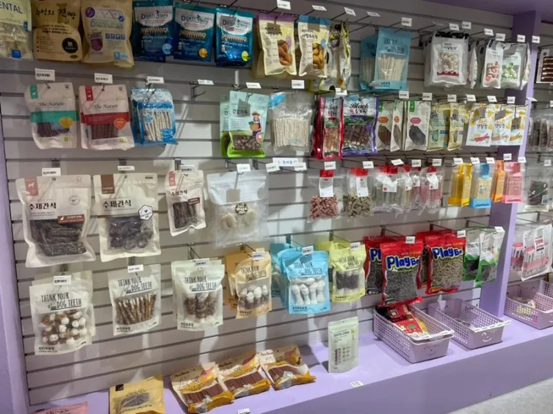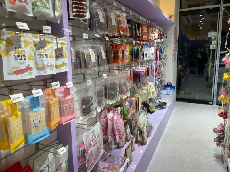 껌, 츄르 등의 간식들이 진열되어 있었고요.