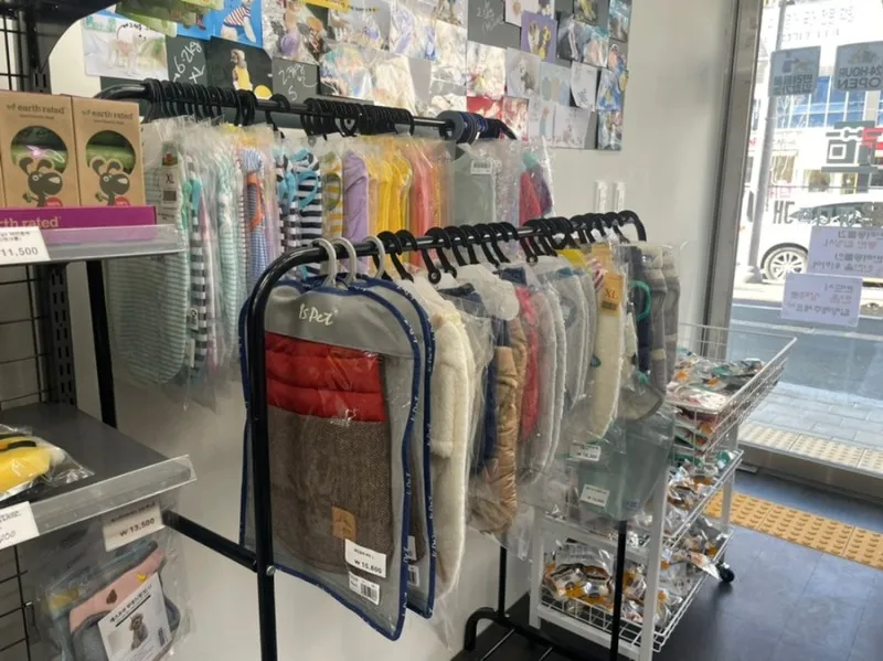 입구쪽에는 귀여운 반려동물 옷들도