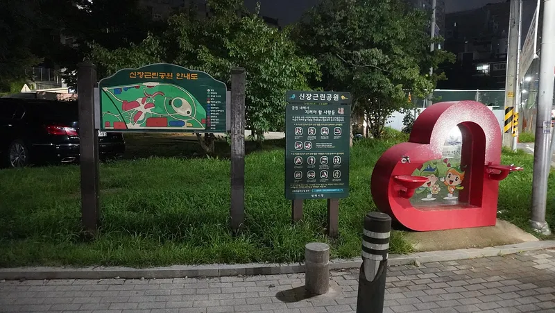 신장근린공원은 낮과 밤 이용하는 분들이 많은 넓은 공원입니다.