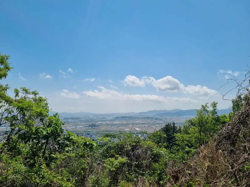아직 절반도 오르지 않았지만 살짝 보이는 김해의 전경을 바라보며 앞으로 나아가봅니다.