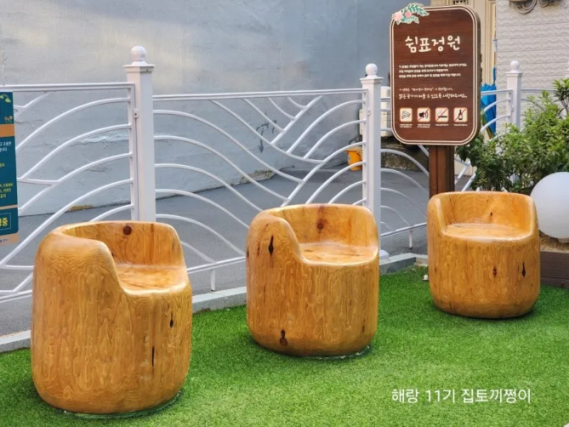 여기도 쉴 수 있는 의자와 지압판이 있어요.