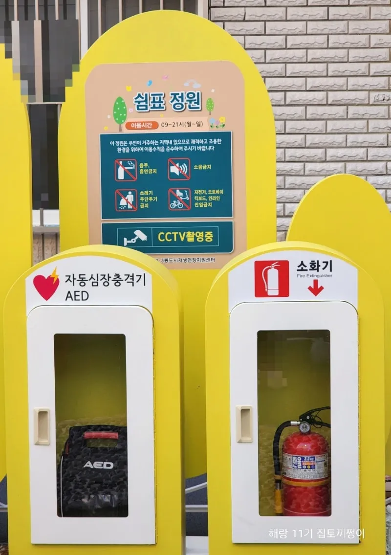 자동심장충격기랑 소화기도 준비되어 있어요.