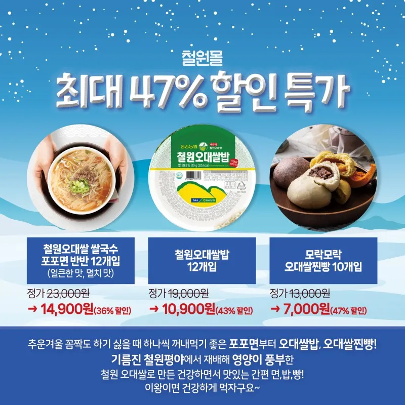 #철원오대쌀밥 #철원오대쌀국수 #오대쌀찐빵 #라이브커머스 #할인전 #할인판매전
