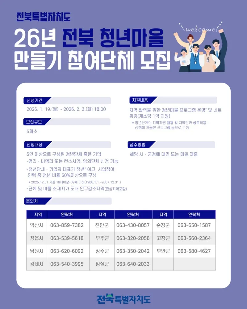 2026년 전북 청년마을 만들기 사업 공모가 시작됩니다. 🏠