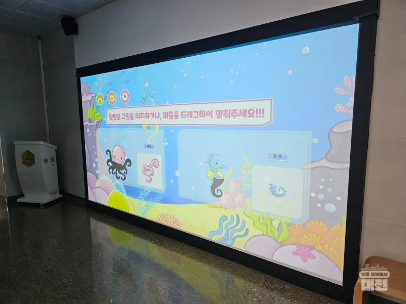 1층 '실감체험실'은 어린이들이 좋아할 만한 공간이었는데요. 직접 만지고 퍼즐을 만들고 움직이며 즐겁게 실감하는 체험실이었어요. 점수 대결도 있어서 아이들 너무 즐겁게 게임도 하고, 소근육 대근육 운동도 하고 즐기는 모습이 보기 좋았답니다.