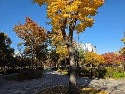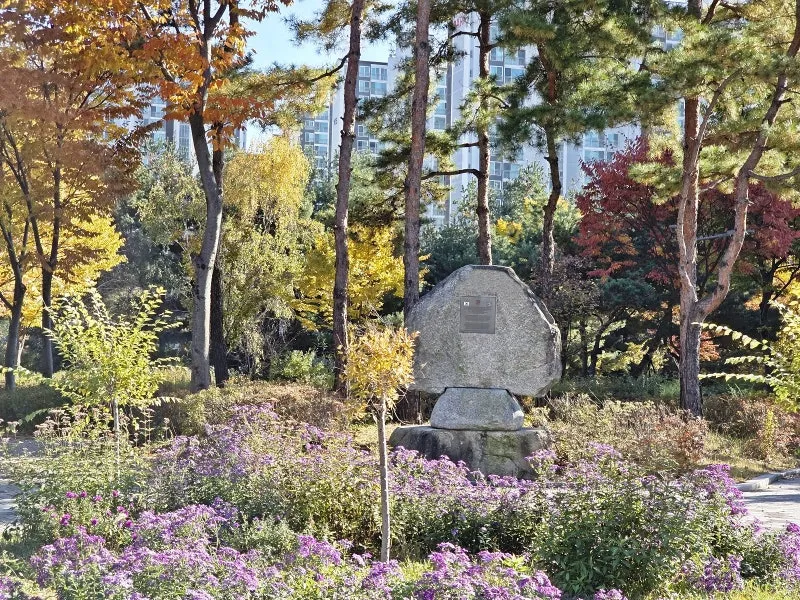 금오동 상록근린공원은 시민들이 산책과 휴식을 즐기는 도심 속 녹색 쉼터로, 공원의 중앙에 노르웨이 참전비가 자리하고 있습니다.