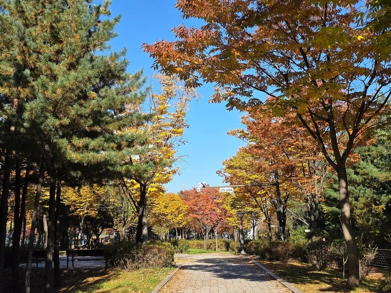 깊어가는 가을의 노르웨이숲길은 단풍과 상록수가 어루러져 사계절을 모두 느낄 수 있는 힐링 산책길입니다.
