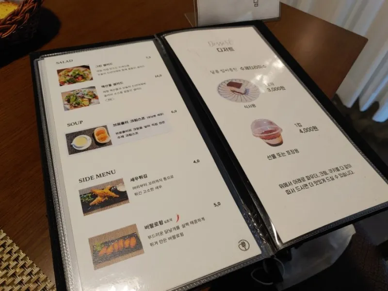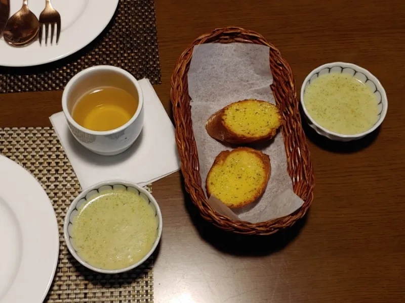 먼저 마늘빵과 샐러드, 스프가 나왔습니다
