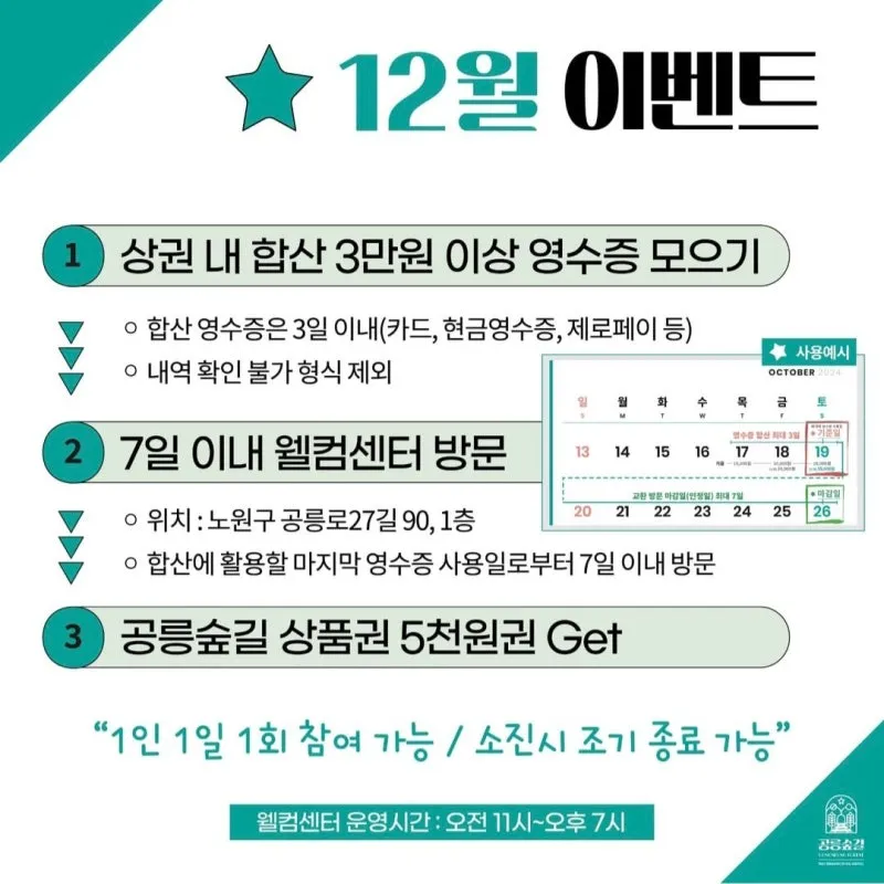 인근 상권 활성화를 위한 경춘선 공릉숲길 상품권 12월 이벤트