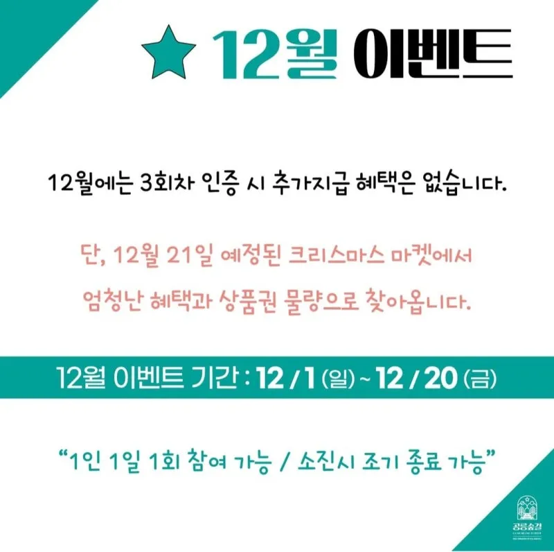 12월에는 3회차 인증 시 추가 지급 혜택이 없어요ㅜ.ㅜ