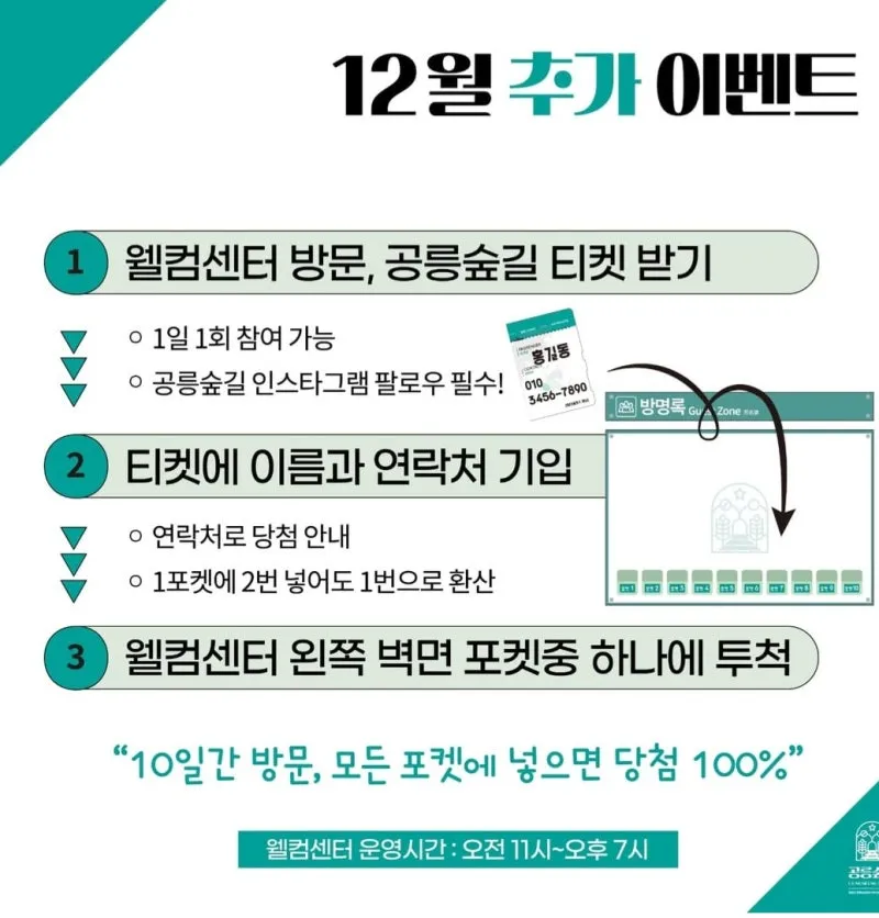 1일 1회 참여 가능, 공릉숲길 인스타그램( https://www.instagram.com/gongneung_forest/ ) 팔로우 필수