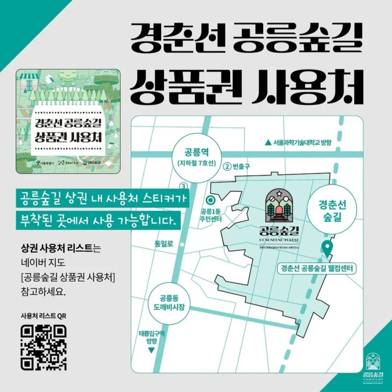 네이버 지도에서 '공릉숲길 상품권 사용처' 검색 후 이용하시면 됩니다.