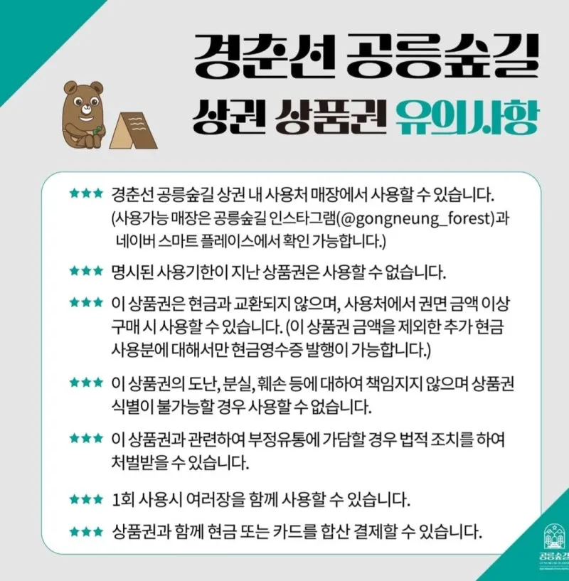 [이벤트] 경춘선 공릉 숲길 상점 이용하고 영수증 모아 인증하면 상품권이 생긴다?!