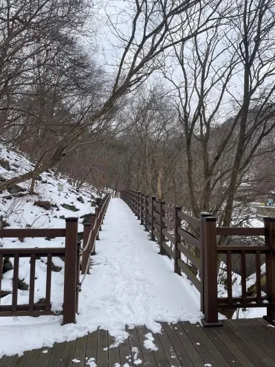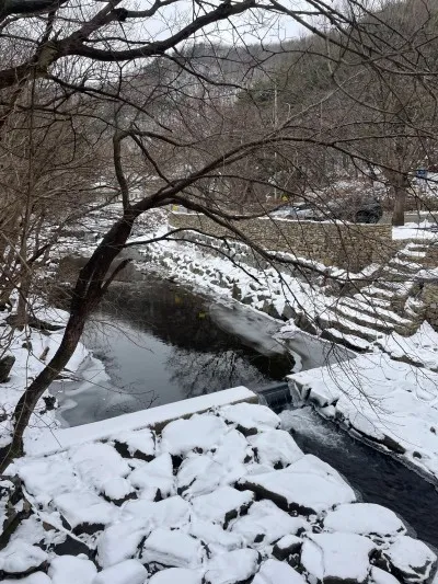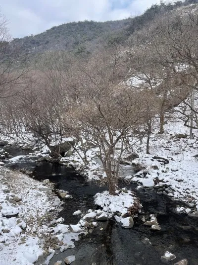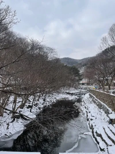 뽀득뽀득 눈밟으며 계곡물 ASMR을 들을 수 있어요.