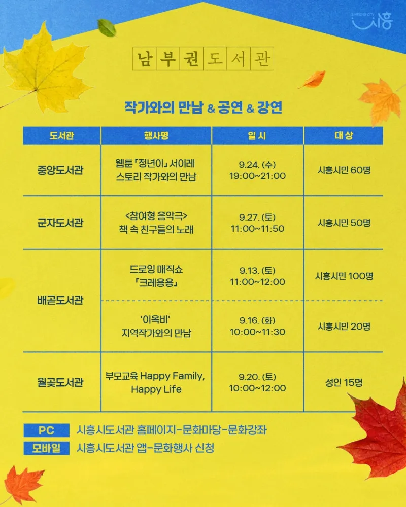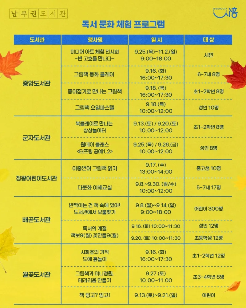 시흥시 도서관에서 다채로운 독서문화 행사가 여러분을 기다립니다!