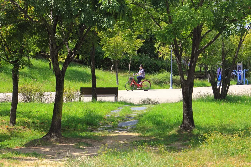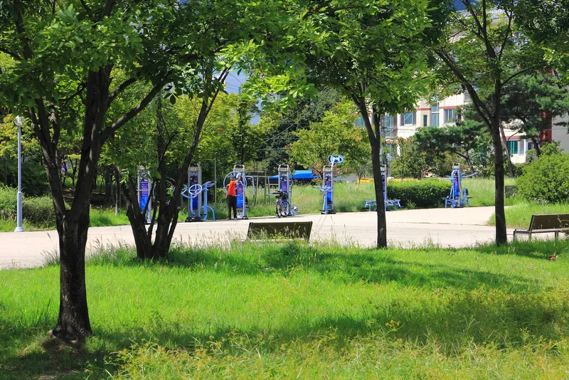 수릉원 한마당 산책로에는 쉴 수 있는 의자와 운동시설도 준비되어 있습니다.