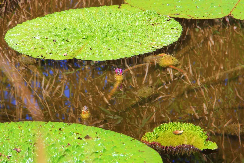 연못에는 옛 가야 시대 습지에서 서식했던 것으로 추정되는 수련과 노랑어리연꽃이 많지만, 아시아 특산 희귀식물인 가시연꽃도 있습니다.