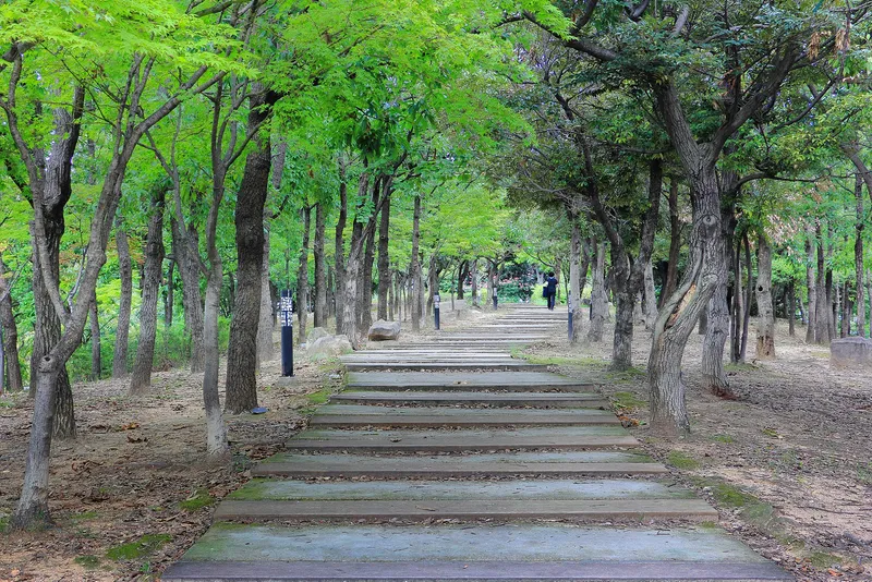 수로왕을 기념하는 공간은 계단길을 따라 걸을 수 있는 도심 속 아름다운 숲입니다.