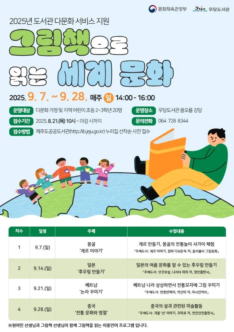 #우당도서관 #그림책으로읽는세계문화 #제주도서관 #어린이체험 #문화다양성 #8월행사 #선착순모집