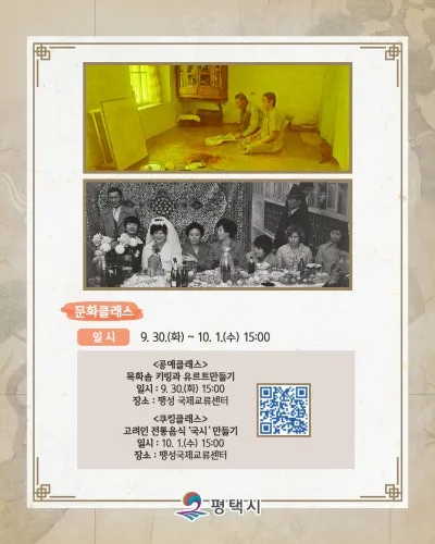 클래스 일시 : 9. 30.(화) 15:00 장소 : 팽성국제교류센터 |