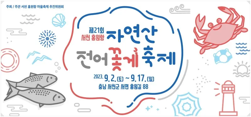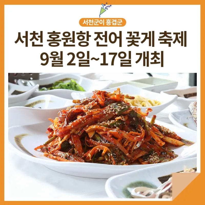 가을철 별미인 전어와 꽃게를 맛볼 수 있는 ‘제21회 서천 홍원항 전어 꽃게 축제’가 9월 2일부터 17일까지 서천군 서면 홍원항 일원에서 개최됩니다.