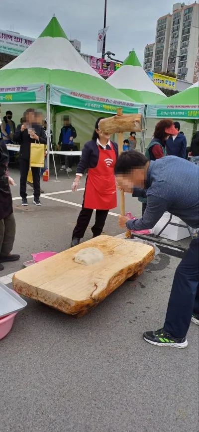 체험자 한 분은 정말로 힘들게 떡메질을 하시는데 지켜보는 제가 다 땀이 날 정도였습니다.