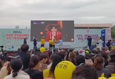 KTX-이음 남창역 정차 기원 퍼포먼스와 함께 초대가수 박성온과 김다나의 공연이 이어졌습니다.