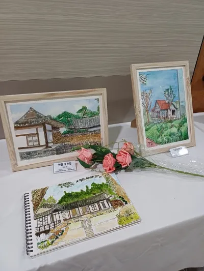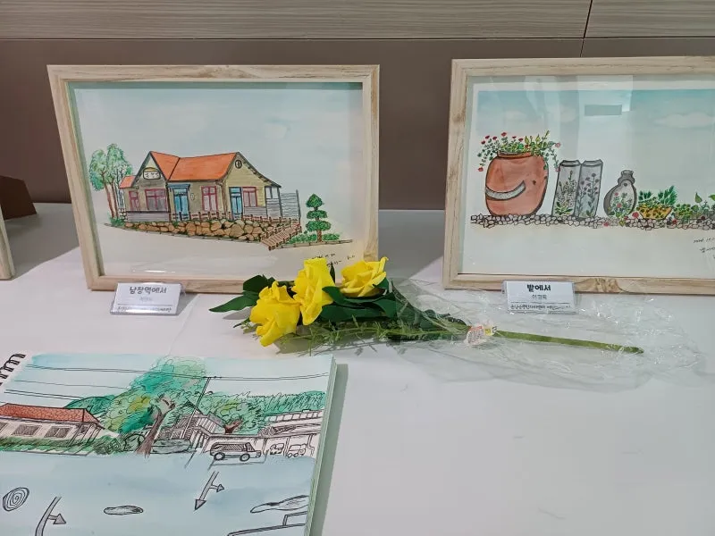 다양한 작품 중 눈에 띄는 작품으로 옛 남창역을 주제로 한 어반 스케치 그림이 눈에 띄었습니다.