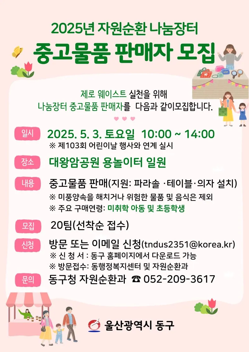 울산 동구, 자원순환 나눔장터 판매자 모집 안내