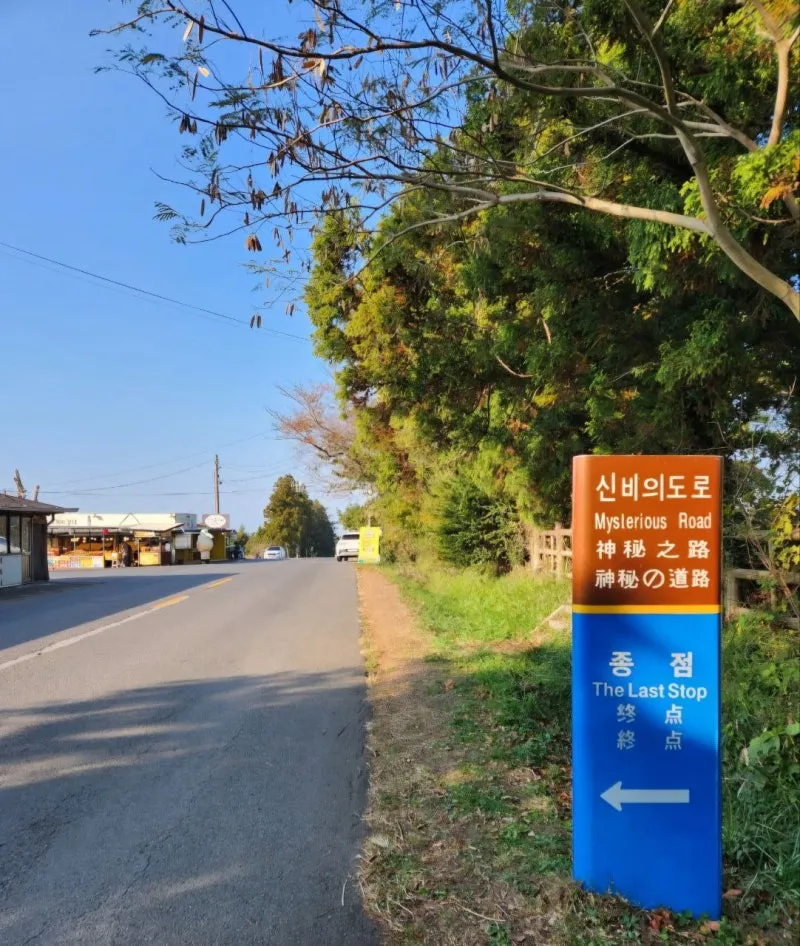 신비의 도로는 내리막길에 차를 세워두면 아래로 내려가야 하는 차가 오히려 오르막 쪽으로 올라가는 기이한 도로로 도깨비 도로, 요술 도로라고도 불린다. 사실 이는 오르막길이 보이는 쪽이 경사 3도 가량의 내리막길이여서 단순 착시현상을 일으키는 것이라고 알려져 있다.