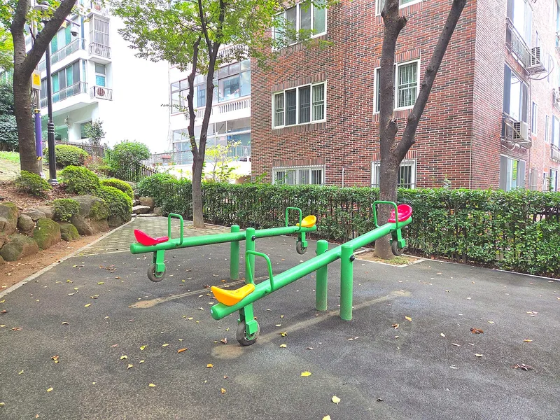 동네 아이들이 놀러와 놀이터에서 신나게 뛰어놀 수 있었고, 놀이터 옆에는 벤치가 있어 부모님들이 아이들의 모습을 편안하게 지켜볼 수 있었습니다.