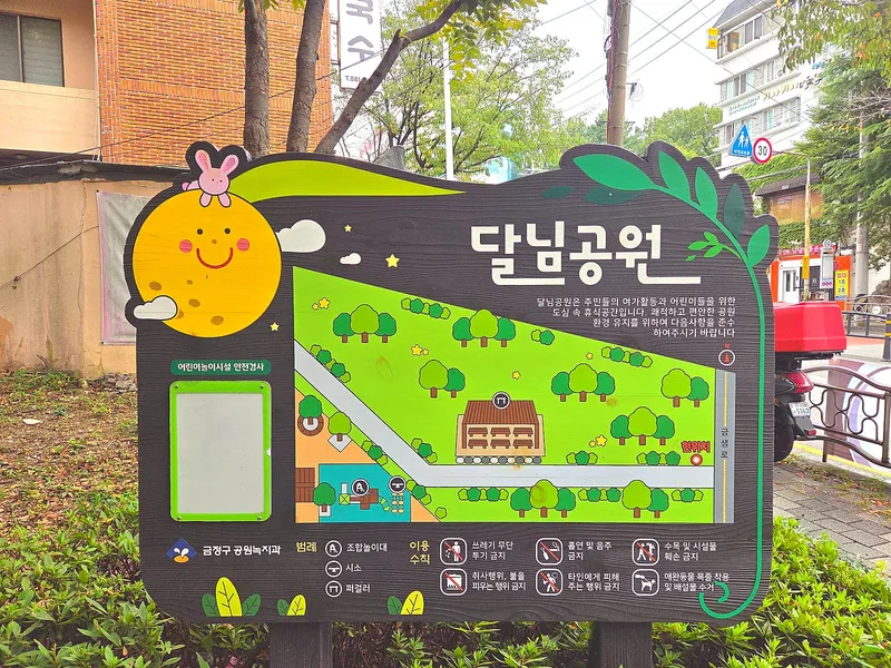 달님공원은 주택 사이 경사진 지형에 자리한 아담한 공원으로 잘 정비된 산책로와 파고라, 벤치, 놀이터 등이 있어 산책과 휴식, 놀이를 모두 즐길 수 있는 공간이었습니다. 가족 단위 방문객이나 동네 주민들이 편안하게 시간을 보내기 좋고, 아이들과 함께 자연 속에서 여유로운 시간을 보내고 싶은 분들은 방문해보시기 좋았습니다.