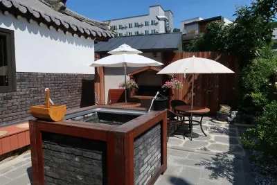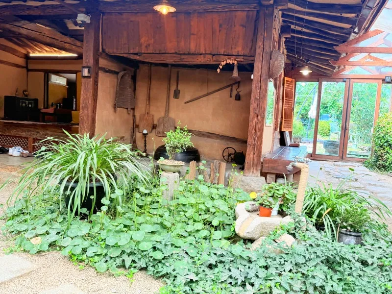 한옥 정원, 우물, 조경, 나무 그늘 등이 잘 어우러져