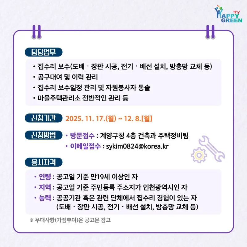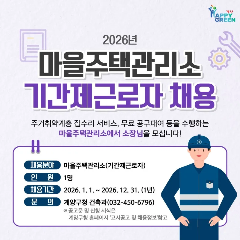 2026년 마을주택관리소 기간제근로자 채용 안내