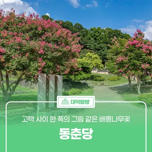 봄이면 매화 명소로도 유명한 동춘당 공원은 계절마다 다른 매력을 선사합니다. 봄에는 매화가, 여름에는 배롱나무꽃이 공원을 아름답게 장식하며 사계절 내내 시민들의 휴식 공간 역할을 하고 있습니다.