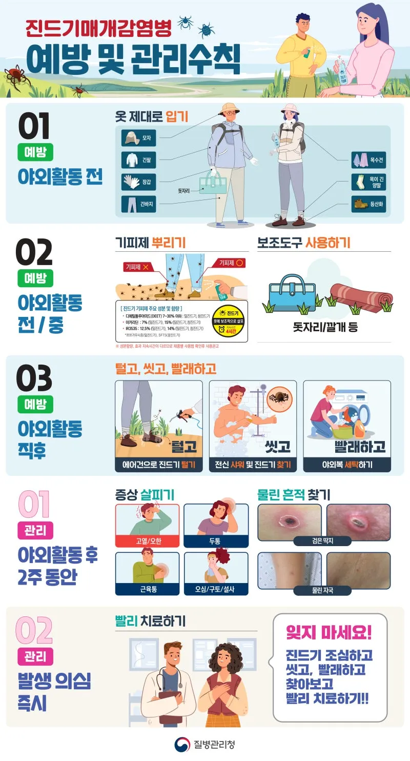 진드기매개감염병 예방 및 관리수칙 안내드립니다!