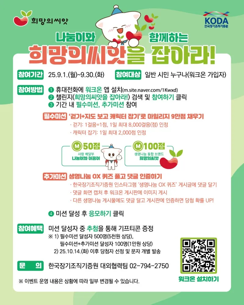 👉 워크온 앱에서 ‘희망의씨앗을 잡아라!’