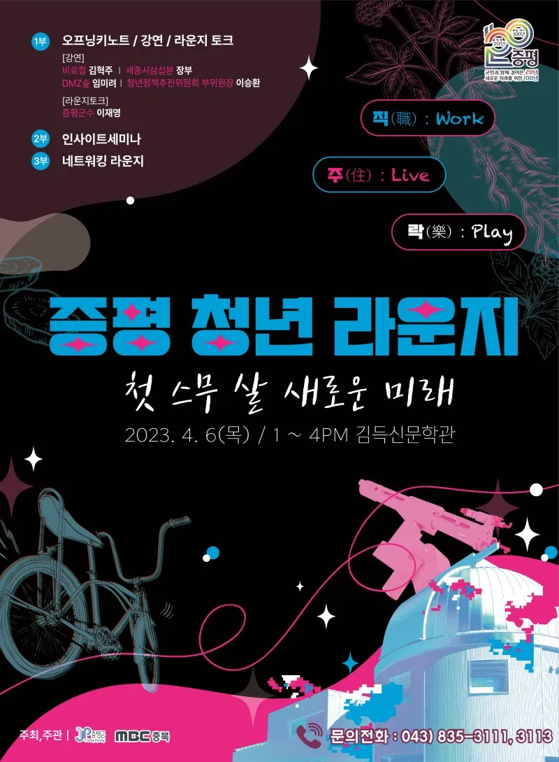 ❤️저희 증평군에서는 증평군의 스무살을 맞이하여 스무살 청년 라운지 세미나를 개최합니다.❤️
