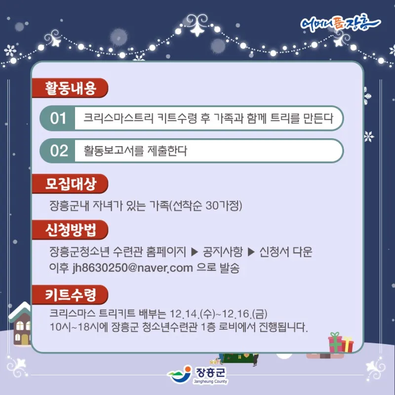 #장흥 #장흥군 #장흥군프로그램 #체험활동 #체험활동프로그램 #트리키트 #크리스마스 #모집