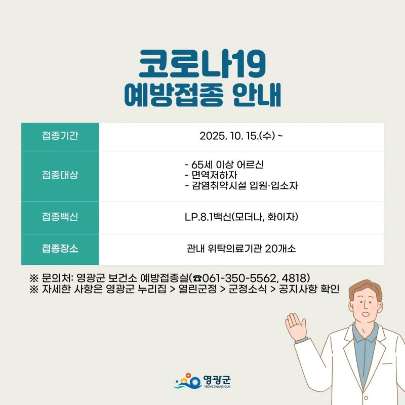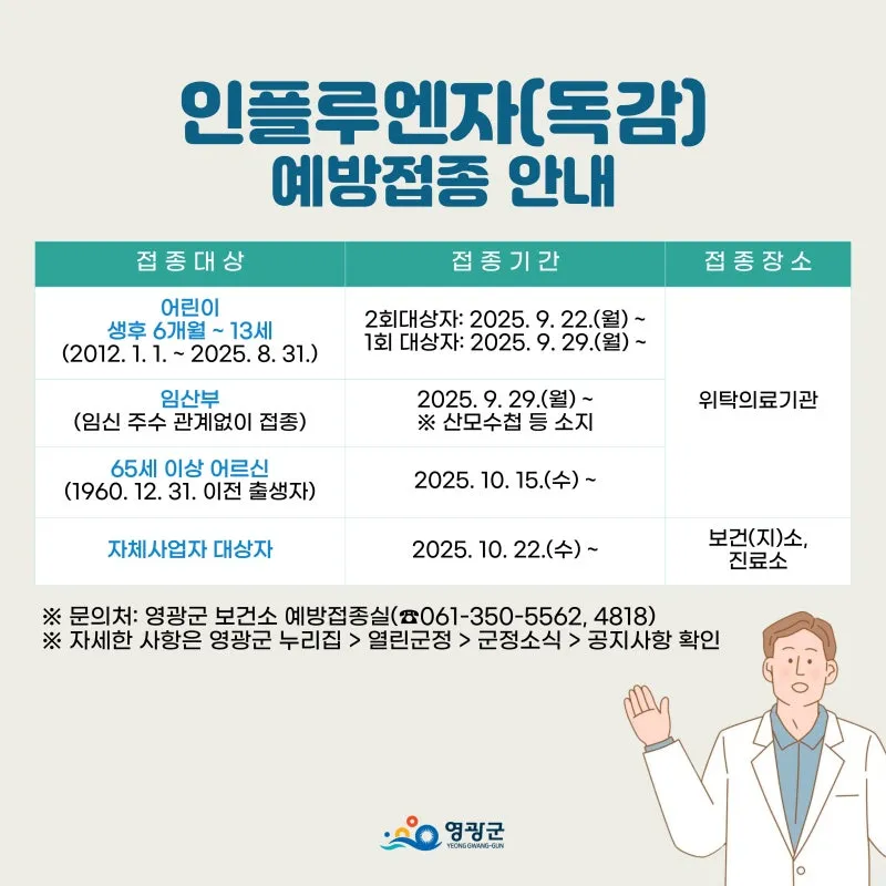 영광군과 함께하는 2025-2026절기 인플루엔자(독감) 및 코로나19 예방접종 안내